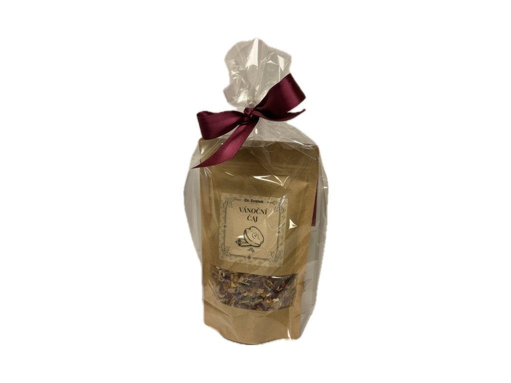 Ovocná směs vás zahřeje i naladí příjemnou vánoční atmosféru. Neobsahuje žádné barviva ani aromata. Doporučujeme vyzkoušet s rumem či se svařeným vínem. Plná chuť jablka, pomeranče a hřebíčku naladí vánoční atmosféru, stévie přidá příjemně sladkou chuť. Směs neobsahuje žádná umělá barviva ani aromata. Doporučujeme připravený čaj vyzkoušet s kapkou rumu či se svařeným vínem. Složení: Jablko plod, rozinky, pomerančová kůra, růže okvětní plátky, šípek plod, zázvor kořen, citronová kůra, jeřáb černý plod, hřebíček, skořice, citronová tráva, stévie. Příprava: 1 polévková lžíce (8 g) do 200 ml horké vody.
