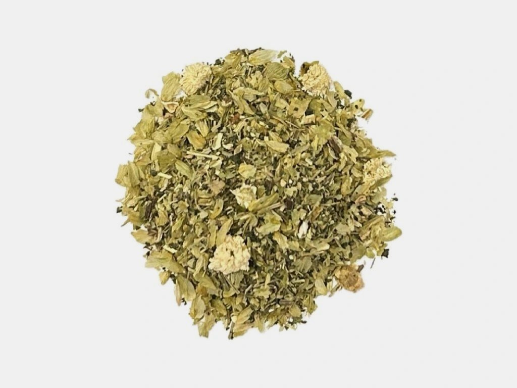 Složení: lopuch kořen, kopřiva nať, rozmarýn list, heřmánek římský květ, chmel šištice